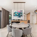 This 5-bathroom villa comes with a bathroom with a hot tub, a separate toilet, and a shower. Bathrooms are also equipped with a dryer and towels for your comfort.
